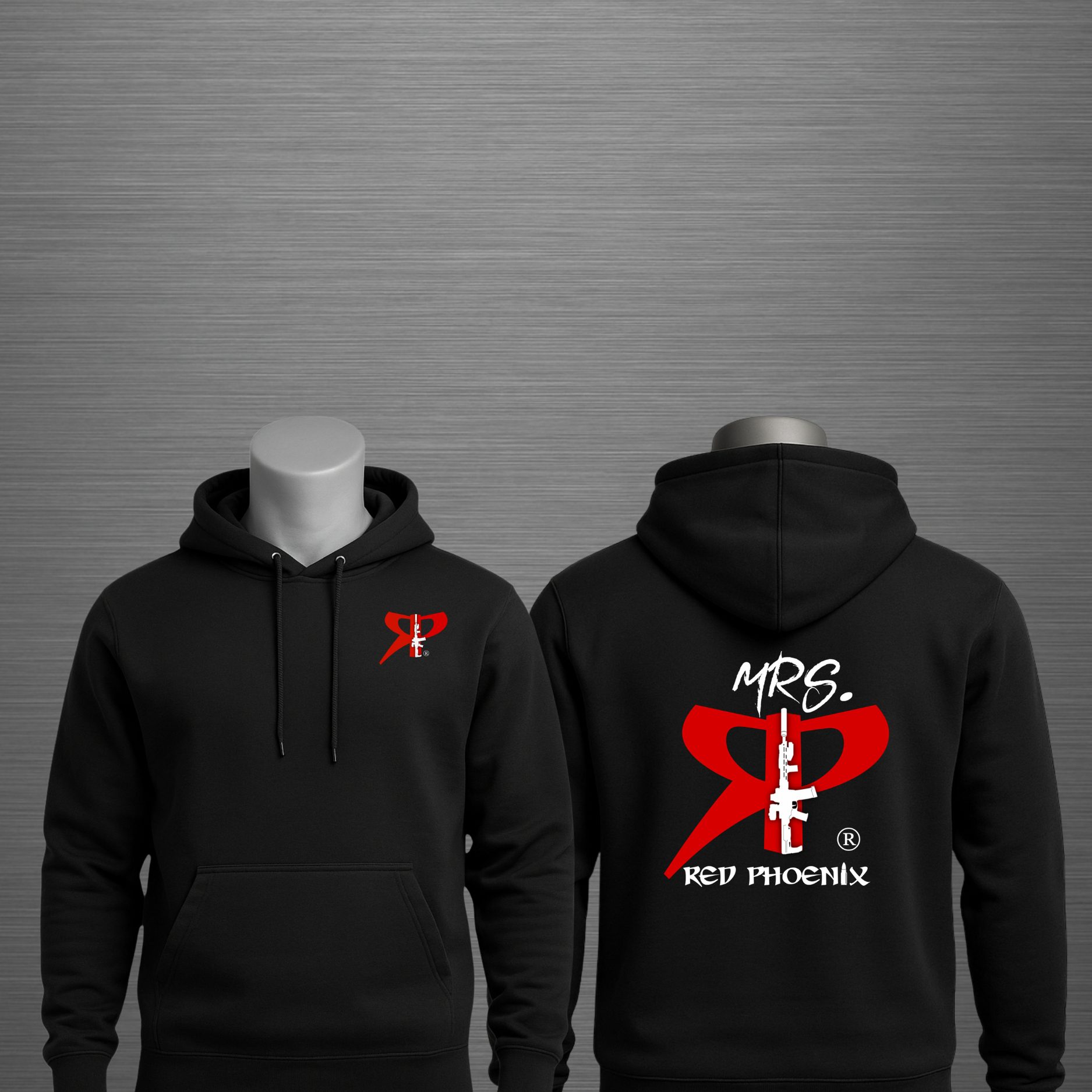 Price range: $24.00 through $28.00Mrs. Red Phoenix Defense MRS Hoodie (Red on Red)